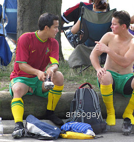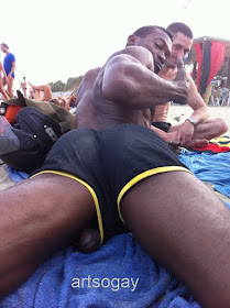 Avec la mode des "saggers", on se rince l'oeil dans la rue en voyant une partie du sous vêtement du mec et en devinant la courbe des fesses et parfois même, pour les extrêmes, celle du sexe. (j'ai déjà fait un spécial saggers, voir le post du13/12/10). Aujourd'hui, c'est le cas des testicules ou de la verge qui dépassent, parfois de façon involontaire du short, cas observable souvent en sport ou à la plage. Ainsi, si vous ne voulez pas que ça vous arrive, évitez le caleçon sous le short, ou de ne pas avoir de sous vêtements sous le short. Finalement, ne suivez pas le conseil que je viens d'indiquer, sinon on aurait plus la possibilité de voir les images ci-dessous!!!